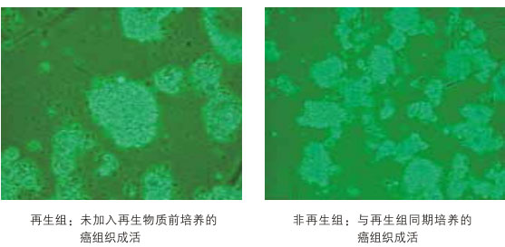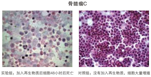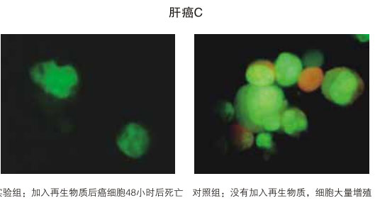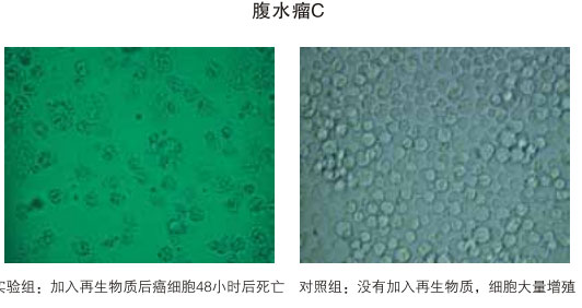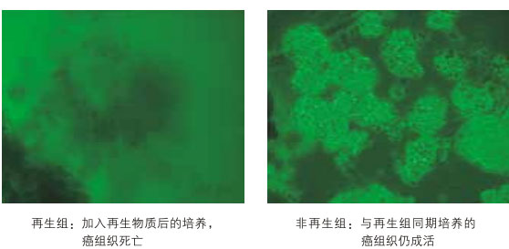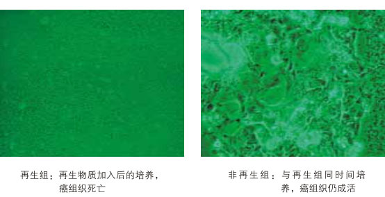 ①癌细胞培养试验:选数种癌细胞系,在体外分别进行细胞培养试验,向培养液中加入一定量的再生物质,其培养结果是癌细胞在48小时后死亡。