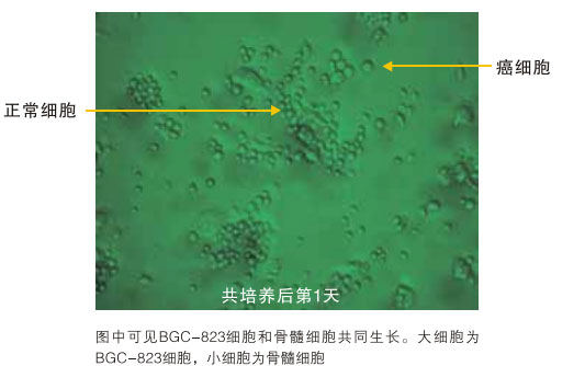 低浓度BGC-832(胃癌C)细胞与高浓度骨髓细胞的共培养结果