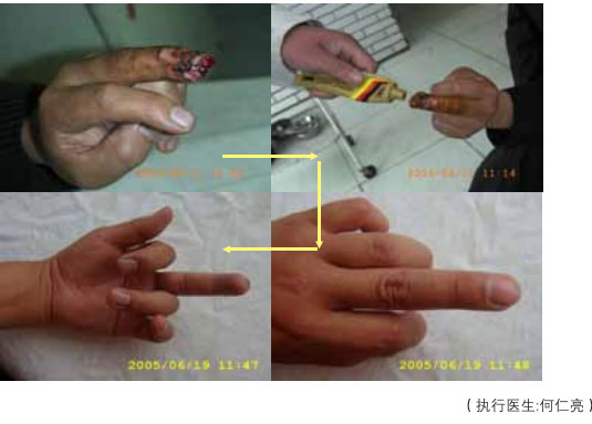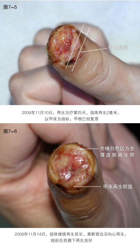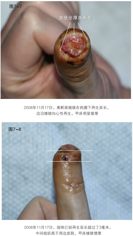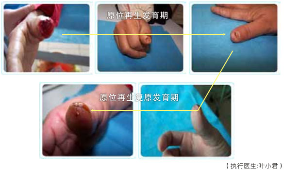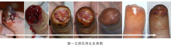 2008年11月30日手术切除远端部分再生指体,继续原位再生,2009年1月指体形态功能复原