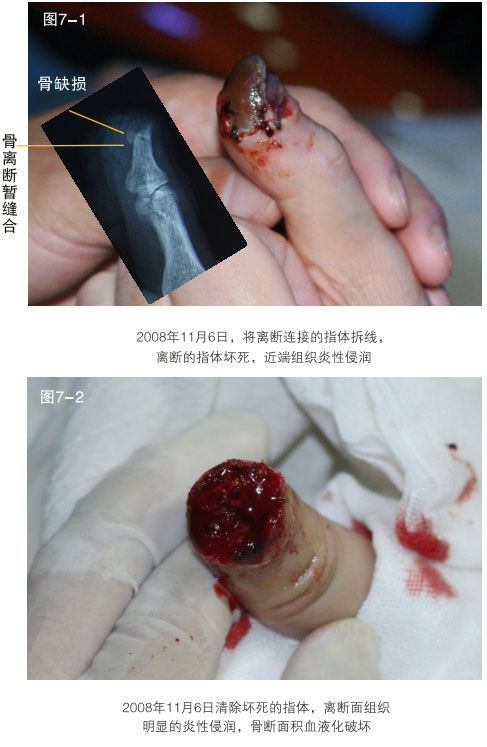 2008年11月2日离断连接失败,2008年11月6日再生复原治疗,2008年1月再生缺如愈合