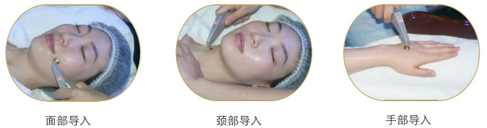 方法一:在美容院内或其他美容保健机构,即使在家里也可进行操作,方法是将液体再生营养物质用2P高压氧仪器,直接从皮肤表面导入表皮和真皮内,每周导入一次,也可两周导入一次。但在间隔期间,需用再生营养物质乳化剂套装涂在皮肤表面,持续地保障供给皮肤器官再生所需的再生营养物质,早晚至少各一次。操作步骤图解: