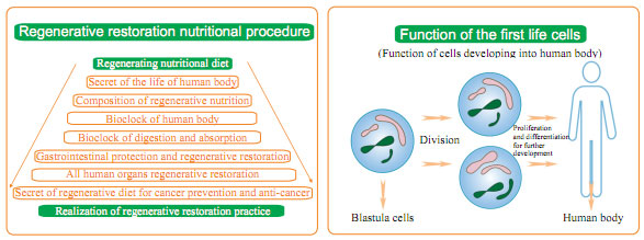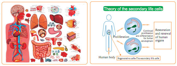 The basis of regenerative restoration refers to the secondary life potential of the human body. Since the merger of a sperm and an ovum into one cell, the zygote-derived cell will develop into a human being under certain life conditions and last until the end of the person’s life circle, which is the so-called first life of the cell. So where dose the secondary life cell come from? It is impossible from recombination of sperm and ovum, which would form a new human. Even the cloned human can not be considered as the original one. For years, we are making efforts to seek the clue of the existence of regenerative secondary life. If there is, then where is it? Finally, this long-chased vision was discovered in our medical practices in treating burns when we found the source of regeneration---the cells which could regenerate into new skin in deep burn wound. In 1980s, I proposed the theory that human body has the potential of regeneration. Though I claimed the theory mainly on skin regeneration, no one believed it at that time, and someone even blamed me as fraud. The opposing voice lasted for many years till the year of 2000 when the truth changed their mind. By then, we have already started the studies on regeneration of other organs based on the principle of skin regeneration. The studies were initiated by my assumption that it is possible to realize other organ regeneration if skin regeneration has come true. The first study is gastrointestinal (GI) tract regeneration. Considering GI tract and skin derived from two different embryonic germ layers, the success on GI tract regeneration indicates the possibility of regeneration of organs derived from the same germ layer. So based on the experience from the skin regeneration, I started the study on GI tract mucosa regeneration on the cell level, which was followed by the results of GI mucosa regeneration and restoration in aged gastrointestine within half a year. The success on GI tract regeneration is more significant than burn skin regeneration or even distal end finger regeneration, because GI tract can represent any internal organs based on their same origin in embryo, and GI tract regeneration means the possibility of all internal organ regeneration. We have been working on the GI tract regeneration procedure since early 1990s, and completed the first stage by 1997, and published our study results in 2000. Since 2002, we continued to extend the study from GI tract to 55 tissue organs. And in 2002, we made a press release titled as “life sciences explosion” when there were 30,000 relevant news reported on the day. Another five years was spent before all organ regeneration study was finished. Now, comprehensive human organ regeneration in situ is also completed.
