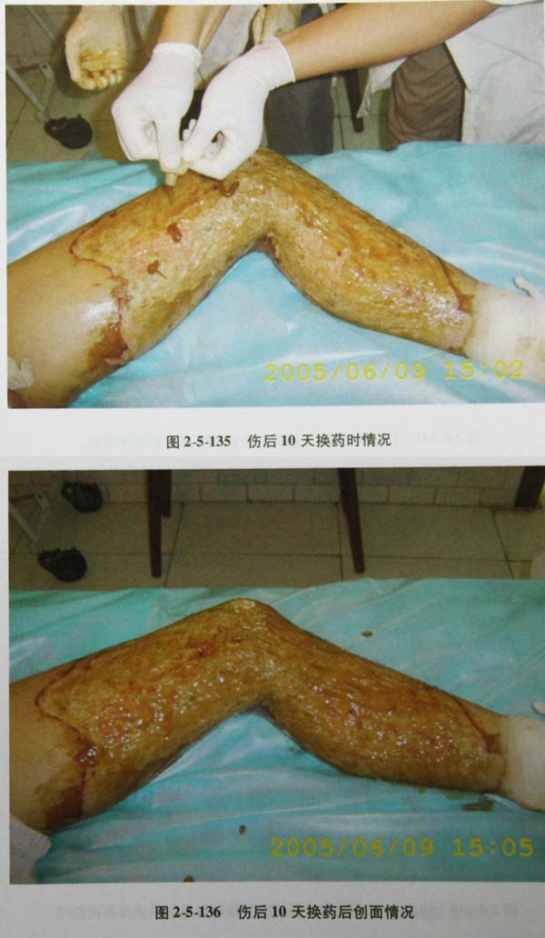 (2)此类创面多发生在头顶、手、足及小腿部位,创面很深达骨膜。