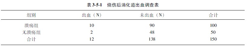 4结果分析:烧伤前有溃疡病病史者消化道出血的相对危险度RR=25,这意味着有溃疡病病史者烧伤后消化道出血机会是无溃疡病病史者的25倍。