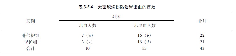 示例354某医生研究大面积烧伤采用“胃肠黏膜保护剂”预防胃出血的作用,资料汇于表356中。问大面积烧伤病人不用“胃肠黏膜保护剂”进行预防治疗,是否是大面积烧伤病人发生胃出血的危险因素?
