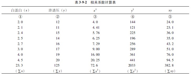 1根据表391中的数字,以横坐标表示血浆白蛋白(x),纵坐标表示渗透压(y),绘成散点图(示图391)。从所绘制的图中可以看出,这些点子基本呈直线趋势。