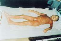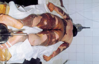 病例六:患儿7岁,石灰烧伤90%TBSA 这是治疗前的表现