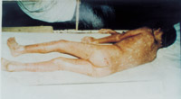 病例八:患者18岁,液化汽火焰烧伤,95%TBSA,这是治疗前的表现 1.前面