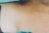 5.深Ⅱ度、浅Ⅲ度混合度创面(左上臂内侧)自行愈合后3年,皮肤结构大部分正常