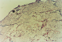 3-23 对其“皮点”进行组织学检查,该组织为从皮下组织中再生出的微血管、胶原组织、表皮细胞组织组成的再生皮肤组织团