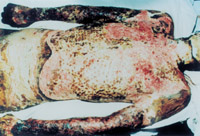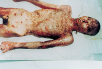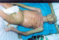 3-14 多次植皮,伤后第70天的表现,病人残废