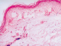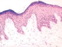 5-2-12 伤后第22天愈合,新生皮肤的结构同正常皮肤 HE×100