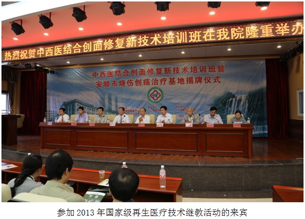 2013年5月31日,由国家中医药管理局批准、中国中西医结合学会烧伤专业委员会主办的2013年国家级继教项目《中国中西医结合创面修复新技术培训》暨安顺市烧伤创疡治疗基地揭牌仪式在中航工业贵航302医院举行,这项活动由贵航302医院承办,安顺市卫生局协办。来自全国各省市142名专家及医务工作者到会参加学习。本次会议由贵航302医院周书记主持,参加会议的专家和来宾有中国中西医结合学会烧伤专业委员会主任委员肖摩教授、中国烧伤创疡杂志社副总编辑王洪生研究员、中国中西医结合学会烧伤专业委员会副主任委员、广西右江民族医学院副校长唐乾利教授、中国中西医结合学会烧伤专业委员会副主任委员、遵义医学院附属医院副院长王达利教授、福建中医药大学附属福建省人民医院重症医学科郑文贺副教授、贵州省中西医结合学会李志伟秘书长、安顺市卫生局张晓霞副局长、贵航302医院陈志坚院长等。