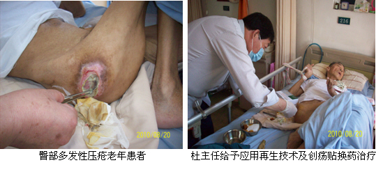 杜主任还深入病区看望了各医院的烧伤、创疡患者,并亲自为电击伤患者、褥疮患者换药和指导用药治疗,受到医护人员和患者家属的欢迎与感谢,达到了深入推广再生技术的目的。