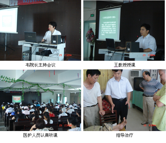 2010年7月29日,中国中西医结合学会烧伤专业委员会常委、北京美宝烧伤创疡研究所副所长、临床研究部王洪生教授应邀来到独山县人民医院进行 “再生疗法在难愈性创疡创面治疗新进展”的专题临床学术讲座。当天下午15:00由该院韦院长主持并宣布学术培训会开始,来自独山县中医院、独山县人民医院的各科室医护人员共100 余名参加了本次学术培训会。培训会上王教授利用大量的临床图片资料和影像资料深入浅出地介绍了再生复原疗法在难愈性创疡创面治疗的新进展;对不同深度、不同原因烧伤创面的临床规范化处理;大面积烧伤的全身综合治疗及护理;针对不同程度的烧伤创面、溃疡创面进行了详细地讲解。会后,王教授应邀对一名老红军进行会诊,并指导医生设定治疗方案。