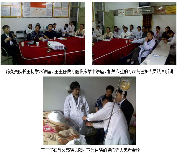 2011年11月28日上午,中国中西医结合学会烧伤专业委员会常委兼秘书、《中国烧伤创疡杂志》副总编辑、北京美宝烧伤创疡研究所副所长、临床研究部主任王洪生研究员应长乐市中医医院院长陈久亮副主任医师的邀请到该院做“烧伤皮肤原位再生复原技术的诊疗与护理”及“再生复原疗法在难愈性创面治疗新进展”临床专题学术讲座,王主任到达该院后,首先在陈久亮院长、该医院医务科长、创伤外科、骨科主任等专家陪同下深入该医院创伤外科骨科病房为1例褥疮患者会诊,然后,王主任又在陈久亮院长及该医院领导班子陪同下到长乐市政府已批准投资5亿人民币开始规划建设的医院新址参观。
