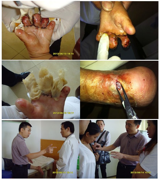 会后数名医生围着王主任就他们在临床上的一些棘手的问题向王主任请教,耳鼻喉科的医生更是把病人都带到会场。王主任当场指导。当日下午讲课结束后及第二天上午,王主任两次应邀到该院骨科、烧伤整形及肿瘤外科去会诊,先后为一例骨科创疡、一例小儿烧伤后并左手指挛缩畸形整形术后皮片生长不良患儿一例左足跟慢性溃疡及一例胸部增生性瘢痕患者进行了会诊及临床指导,医务人员都非常感谢王主任毫不保留的技术传授。