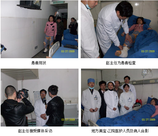 做为再生复原技术发源地的中国创烧伤疡科技医疗中心,对手术的成功表示祝贺,对患者的境况甚为同情和关心。中国烧伤创疡科技中心江苏地方工作人员刘恒和李长舜同志在三月二十七日受中心领导委派,携带再生复原技术专用药品“美宝湿润烧伤膏”赶赴南通三院对患者进行了慰问。南通市电视台对美宝人的善举给予了高度评价和积极报道,三院领导及相关部门也对此次捐赠活动给予了高度赞扬。南通市第三人民医院烧伤整形中心应用再生复原技术、无私的大爱精神惠及广大患者,让患者如沐春风!