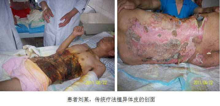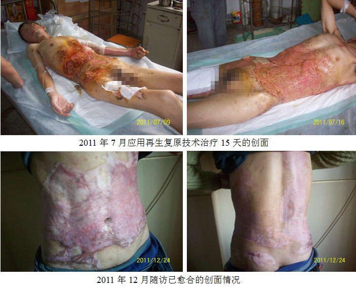 患者刘某回想起住院的那段日子,“经济困难压得我们夫妻俩简直喘不过气来,几次都想寻短见一走了之,传统技术植皮已花掉近10万元,创面又出现植过异体皮的下面感染,在这样的情况下,北京专家杜福勤主任彻底清除了已感染的异体皮,应用再生复原技术和MEBO湿润烧伤膏治疗为我精心治疗,杜主任每天给我清创换药,创面一天天日渐好转,一周后创面明显缩小。当时杜主任有事去其它地方治疗病人,走后第二天,医院又将治疗方法改成了传统治疗方法,朝创面上喷碘伏、用碘伏纱布覆盖创面,疼得我简直难以忍受,盼着杜主任早日回来给我治疗,在我电话的不断催促下,三四天后杜主任回到皖北总院重新给我恢复了再生复原技术治疗,我真的是非常幸运。从应用再生复原技术治疗到全部创面愈合总共费用一万元左右,不论从经济上还是自身痛苦度上来讲,我都是一个极大的受益者,感谢北京烧伤研究所的杜主任!感谢再生复原技术!感谢再生复原技术发明人徐教授!”