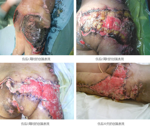 以上患者的创面经过再生医学技术的处理后,健康的肉芽组织已经充满了创面。为了使创面早日愈合和确保愈合的质量,中国烧伤创疡科技中心临床部陈永翀主任,正在和这些医院的医师们保持密切的联系,通过电话和email继续指导他们采用“自体微粒表皮种植培养再生技术”处理创面。相信在不久的将来,这些严重创伤和难愈性创面的患者在徐荣祥教授创立的再生医学技术的治疗下,一定会得到最大程度的恢复。