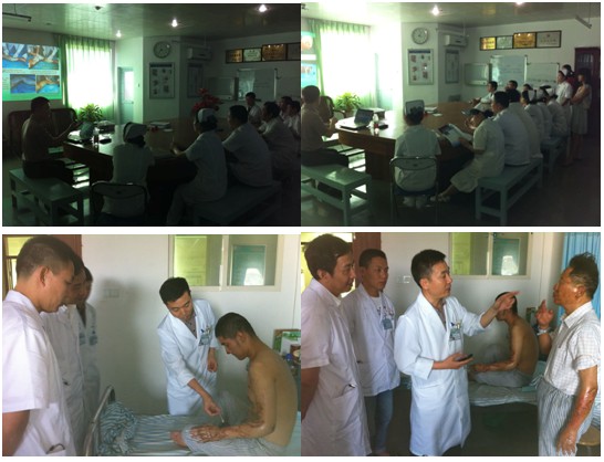 2012年6月8日下午3点,应陆丰市人民医院外二科张平主任之邀,中国中西医结合学会烧伤专业委员会常委兼秘书、《中国烧伤创疡杂志》副总编辑、北京美宝烧伤创疡研究所副所长、第二临床研究部主任王洪生研究员到医院做“再生复原疗法在深度烧伤及难愈性创面治疗新进展”专题学术讲座。在科室的医生办公室,医护人员认真听课学习,王洪生主任结合了大量的临床病例图片及录像资料,主要针对重度烧伤及各类难愈性创伤、溃疡创面的规范化处理方法与技巧、注意事项等进行了细致地讲解,对各医护人员在临床治疗作规范性的示范,并与医护人员就临床应用所碰到的问题作交流和解答。张主任表示今后一定会带领科室医护人员更好地应用再生医疗技术,不断提高再取佳绩,同时请王主任到病房巡查会诊。