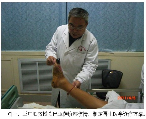 4月3日,王广顺教授和他的网络咨询人员在好大夫个人网站上浏览,看到一个网友发帖说:“自己的亲戚在蒙古国,在3月20日那天的一场大雪中,右脚严重冻伤,国内医生建议截肢,想咨询中国境内能否有更好的治疗方法”。王广顺教授深知用再生复原医疗技术可治疗冻伤,效果显著。于是王教授就联系了这位网友,并议定来济南治疗。