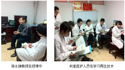 培训会结束后,丁主任做了总结发言。丁主任对陈教授来院授课表示了深深的谢意,并要求科室的医护认真学习再生技术,提高业务技能。同时表示,将尽快把再生技术和产品引进医院,争取早日为患者造福。科室培训会在热烈的掌声中结束。