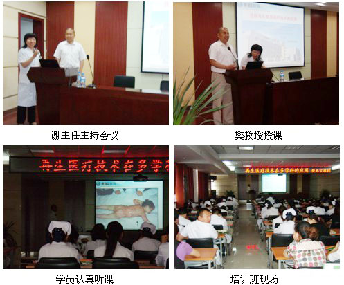 5月31日献县中医院为了让更多的医务工作者更加全面的掌握好再生医疗技术。再次邀请中国中西医结合学会烧伤专业委员会常委、北京美宝烧伤创疡研究所临床部主任樊兆宗教授对全院各个科室骨干医生及护士进行培训,会议由科教科谢主任支持。参加培训的科室有骨科、普外科、妇产科、内科等相关科室的主任和医务人员,共计80余人。樊教授在授课时,通过多媒体介绍了徐荣祥教授发明的皮肤再生复原医疗技术在世界生命科学前沿的地位及目前的科学成果,并通过大量临床典型的病例图片,讲解了不同病例的不同治疗方法及换药处理,本次授课内容涵盖了多个科室再生医疗技术的应用,其中包括烧伤烫伤的治疗,创伤创面的治疗,褥疮及慢性溃疡的治疗,糖尿病足的治疗等。与会的医生听后感觉耳目一新,受益匪浅。他们对再生医疗技术治愈的棘手病例更是称赞不已,大家互相交流临床经验,现场学习气氛非常浓郁。此次培训班圆满结束。