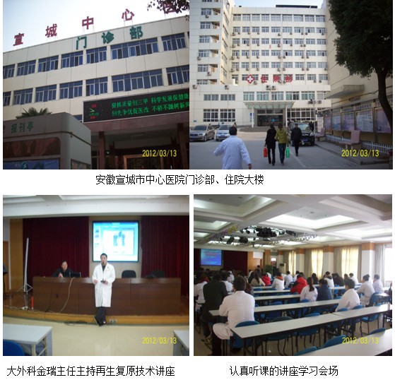 2012年3月13日~14日应大外科金瑞主任和医务处方卫东主任的邀请,中国中西医结合学会烧伤专业委员会常委、北京美宝烧伤创疡研究所临床部主任、烧伤创疡专家杜福勤主任与学会驻宣城市吴崇巍同志应邀为中心医院外科、糖尿病科、骨科、肿瘤专科作了“再生复原技术在烧伤创伤溃疡创面的治疗新进展”学术讲座。下午15:00讲座开始,大外科金瑞主任主持,医生护士50余人参加了学习,院医务处方卫东主任、科教科刘朝明主任、普外科姜主任等参加讲座学习,杜主任利用多媒体图文并茂,通俗易懂的进行了讲解,讲座进行了两个多小时,讲座结束时杜主任和姜主任就烧伤创面、创伤创面、溃疡创面临床有关创面治疗进行了交流,回答了临床遇到的问题,并和丁昊医师多次示范应用MEBO烧伤膏和创疡贴为下肢溃疡患者规范换药,为推广再生复原医疗技术奠定了良好基础,达到了深入推广再生复原医疗技术地目的,深受医护人员的欢迎。