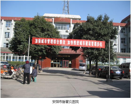安阳市脉管炎医院(又名安阳市中西医结合医院),二级甲等中医院。始建于1984年6月,是一所集医疗、康复、预防、科研为一体的全民事业单位,隶属于安阳市卫生局,是安阳市医疗保险定点医院、河南省新型农村合作医疗定点医院。