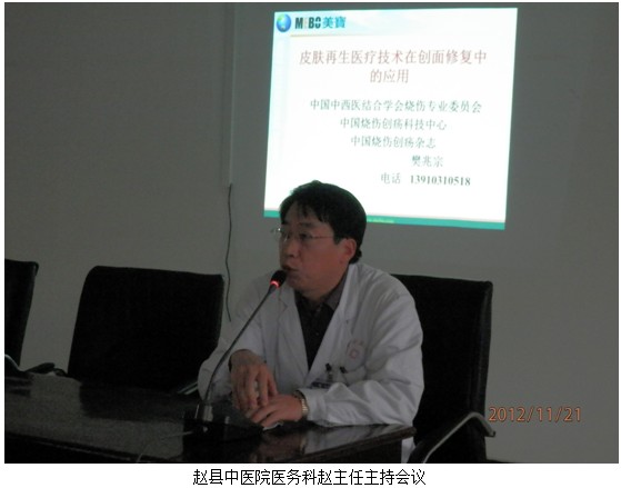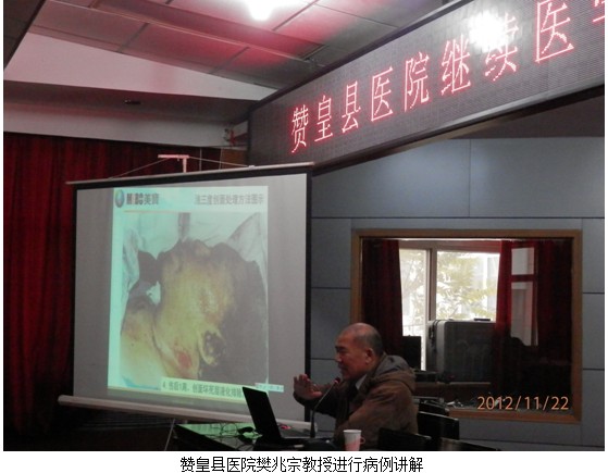 2012年11月21日至22日,中国中西医结合学会烧伤专业委员会委员、《中国烧伤创疡杂志》编委樊兆宗教授应邀分别于河北省赵县中医院和河北省赞皇县医院进行授课。