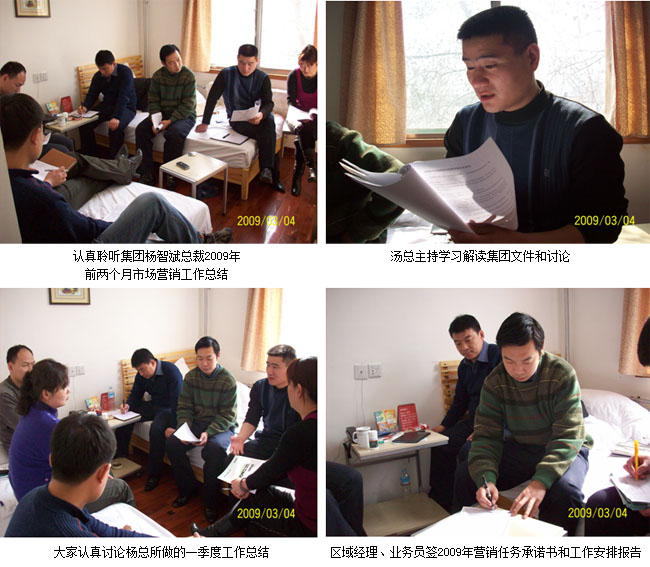 山东地方美宝汤总裁主持了本省会议。他组织并向工作人员解读了关于09年医药集团市场管理文件汇编。而后大家一起进行了认真学习和讨论,在讨论中汤总裁要求各区域经理、业务员积极行动起来,落实一对一、面对面的经营开发理念,确保2009年上半年任务落到实处,做到时间过半完成任务过半。他要求大家要有全年一盘棋思想,有计划、有目的地完成各时间段的任务,这样才能保证全年各项工作顺利完成。最后汤总根据会议精神和杨所指示,结合山东的实际情况进行了具体细致的工作安排。