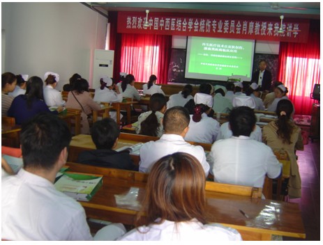 2012年10月18日宣城市再生医疗技术培训班如期举办。学术活动由安徽技术推广办事处和宣城市中医院联合举办。宣城市中医院是经国家批准的二级非营利性医疗机构,应用再生医疗技术已经二十余年。会议由该院张书记主持,张书记是应用MEBT/MEBO多年,并积累了丰富临床经验的专家。来自大外科主任兼业务院长唐院长、骨科裴主任、妇产科杨主任、糖尿病科杨主任、内科护士长等相关专业医护人员近100人聆听了肖摩教授“中西医结合创面治疗新进展”学术报告。大量真实的临床病例图片和图像,将再生复原疗法在难愈性创疡创面、溃疡创面、糖尿病足、褥疮创面的规范化处理方法与技巧、注意事项等进行了细致地讲解,并对妇产科和肛肠科遇到的棘手创面进行了讲解。会议结束后肖摩教授还应骨科邀请,到病房会诊癌症溃疡的患者。