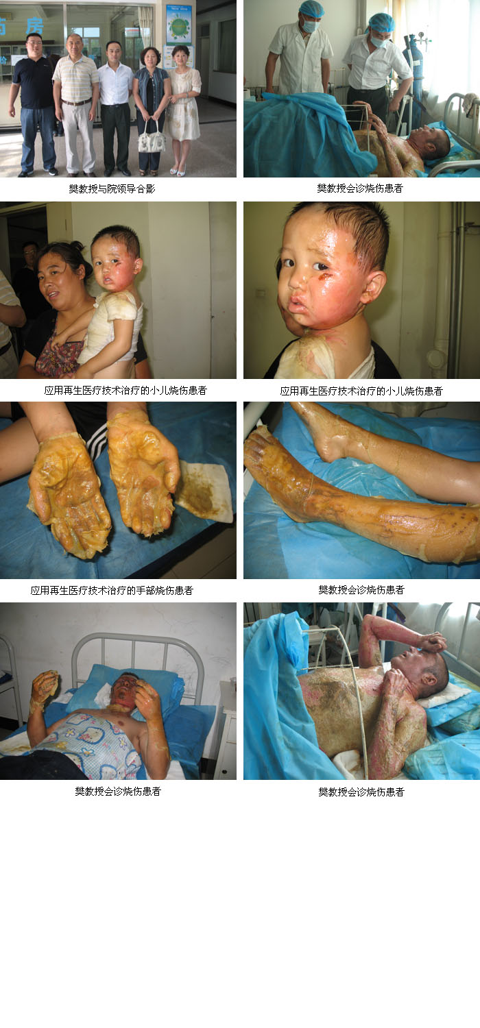 廊坊市蓝天医院烧伤科,成立于二十世纪八十年代,经过二十多年的发展,目前已形成集临床、教学、科研于一体的综合专业科室。拥有一批中、高职专家所组成的医护团队,床位30余张,急救治疗设备数十台,有专业的ICU病房和多功能手术室,做为医院的支柱科室,在学科建设和管理上始终处于领先水平,治愈各类烧伤患者数万例。该院自2001年开始采用“皮肤烧伤原位再生医疗技术”解决了重度烧伤患者伤后致殘、致贫、丧失工作能力等一系列难题。2005年被中国中西医结合学会烧伤专业委员会确定为廊坊地区再生医疗技术规范化培训基地。
