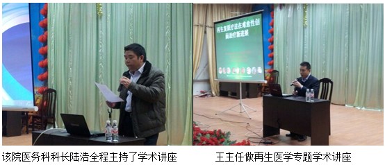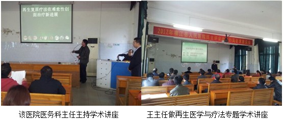 学术讲座于当日下午3时在该医院会议室举行,王主任以“再生复原疗法在难愈性创面治疗新进展”为题进行了专题学术讲座。该院相关科室的专家及医护人员参加了此次培训,在学术讲座中,王主任首先向与会的专家介绍了著名生命科学家、医学家、人体再生复原科学的创立者、再生复原疗法的发明人徐荣祥教授近年来在再生医学领域所取得的重大实验及临床研究成果,而后王主任结合了大量的临床病例图片及录像资料,主要针对各类难愈性创伤、溃疡创面的规范化处理方法与技巧、注意事项等进行了细致讲解,在座的各位医护均被这神奇的疗法折服。