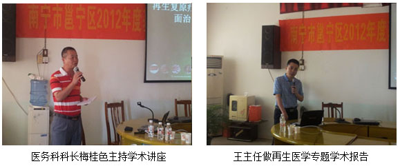 会后,该院副院长兼骨科学科带头人魏海林和医务科科长梅桂色与王主任的交流中讲到,过去只知道再生疗法治疗烧伤,今天听了王主任的讲座才知道再生医疗技术还在难愈性创面溃疡创面中的独特疗效,这次临床学术讲座非常必要,希望王主任有空多到该院进行再生技术的指导,让再生技术更好的掌握再生技术服务于邕宁区人民。