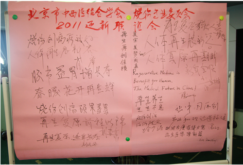 接下来委员们在留言板上留下了热情洋溢的心里话。首先肖摩教授带头写下了《烧伤创疡疗效好,人体再生展新容》。接下来委员们分别既表达了人体再生复原科学发展的美好祝愿——让中国原创理论和产品造福人类;再生再创佳绩,美宝美梦成真;再生养生生生不息,烧伤创伤伤伤愈合等。这些美好的祝福都表达了专家对人体再生复原科学应用充满憧憬和信心。座谈会在热烈的气氛中结束,相信在新的一年里随着人体再生复原科学的广泛应用,一定会造福更多的人群!