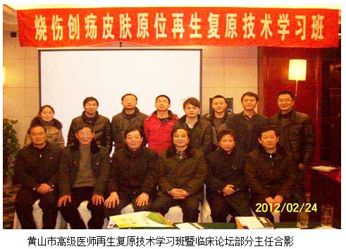 由中国中西医结合学会烧伤专业委员会驻安徽省办事处主办、黄山市辉瑞医药公司协办的黄山市高级医师再生复原技术学习班暨临床论坛在黄山市华茂国际大酒店会议厅正式开幕,二0一二年二月二十四日下午13:50分会议正式开始,来自安徽黄山市三区四县的副主任以上的高级医师30余人参加了会议。