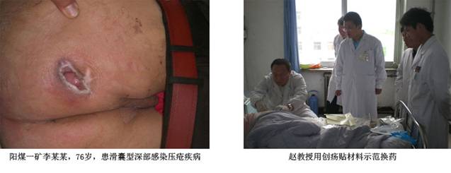 简讯6:8月23日,在山西省阳泉煤矿一矿医院指导使用创疡帖治疗滑囊型深部感染患者。