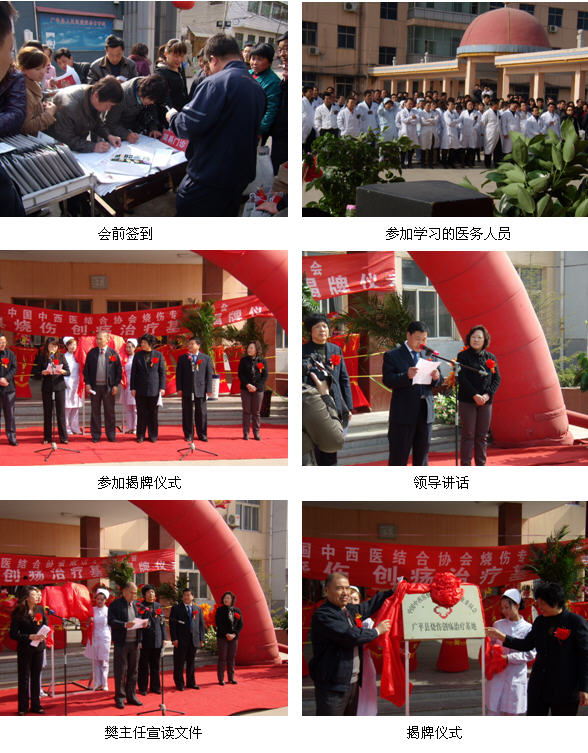 2010年4月8日,经中国中西医结合学会烧伤专业委员会审核批复的“中国中西医结合学会烧伤专业委员会广平县烧伤创疡治疗基地”在河北省广平县人民医院举行了隆重的揭牌仪式。广平县县委领导及卫生局领导到会参加了揭牌仪式并发表了讲话,对此次广平县医院引进皮肤再生医疗技术并建立广平县烧伤创疡治疗基地给予了充分的肯定,并表示县委及卫生局会大力支持此项造福民生的工作。仪式还邀请了中国中西医结合学会烧伤专业委员会常委樊兆宗主任及河北片区主任王琳琳,樊主任宣读了中国中西医结合学会烧伤专业委员会关于建立广平县医院烧伤创疡治疗基地的批复文件。此次活动还邀请了周边县的县乡镇医院的领导及主任参加观摩,并邀请樊兆宗主任在仪式结束后进行了“皮肤再生医疗技术的应用”的培训讲座。此次活动取得了圆满的成功,广平县电视台等多家媒体也给予了广泛的报道。