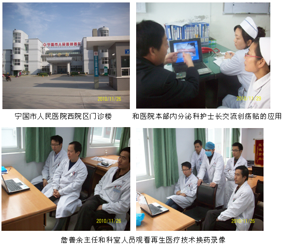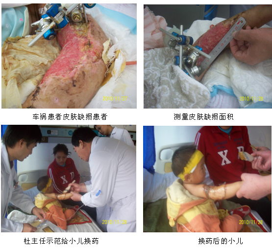 2010年11月25日,中国中西医结合学会烧伤专业委员会常委、北京美宝烧伤创疡研究所临床部主任杜福勤应宁国市人民医院烧伤科主任詹善余的邀请,杜主任于11月26日~30日为一名因车祸致皮肤坏死的患者和一名烧伤患者会诊,并与该院科室的医生进行技术交流。杜主任利用多媒体向大家介绍了应用再生医疗技术救治的临床病例所取得的良好效果,讲解了原位再生复原医疗技术治疗在烧伤、创伤、溃疡创面处理的五大理论核心内容和烧伤治疗“二少一多”及创面处理“三不四及时”原则,通过亲自为患者示范换药,使詹善余主任及全科人员更深刻地掌握了再生医疗技术应用规范,参加学习的医生都表示,再生医疗技术所取得显著的疗效是他们有目共睹的,愿再生医疗技术之花在宁国市长久盛开,福祉烧伤创疡患者。