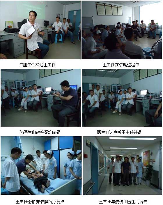 2011年7月11日下午,中国烧伤创疡杂志社副总编辑、中国中西医结合学会烧伤专业委员会常委兼秘书、北京美宝烧伤创疡研究所副所长、临床研究部主任王洪生研究员应重庆綦江县中医院的邀请来到该院创伤外科做临床学术交流。该科室是綦江中医院的创伤救治重点专科,有专门的烧伤治疗小组及中心ICU,为该科室收治严重创伤及大面积烧伤患者提供了保障。