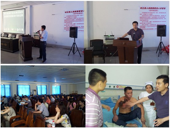 会后,王主任应骨科烧伤外科覃少检主任邀请,为该科住院的一例烧伤患者会诊,王主任结合本病例示范如何规范应用烧伤皮肤原位再生复原技术,并向他们讲解如何判断烧伤创面有无感染,通过王主任的临床指导,纠正了该科过去在使用该项技术时的一些误区,该科主任、护士长及医护人员在聆听了王主任的深入浅出的讲解后,表示在以后的临床工作中,要严格按照规范的烧伤皮肤原位再生复原技术处理创面,以将此技术更好的造福该县的广大患者。
