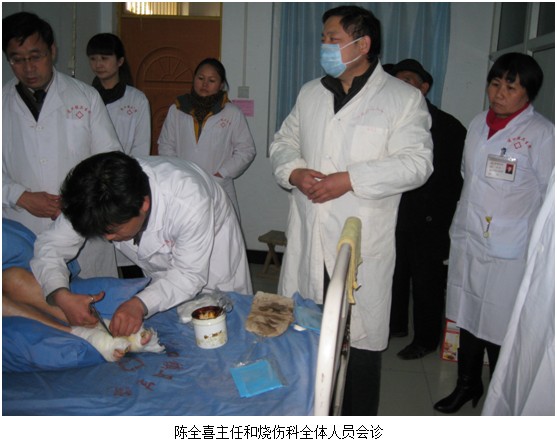 2012年11月26日,中国中西医结合学会、烧伤专业委员会委员、北京美宝烧伤创疡研究所临床部专家陈全喜主任受滑县第三人民医院烧伤科贾主任的邀请会诊一位88岁的烧伤病人。