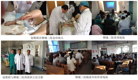 赵教授在鲁西期间,还分别到聊城二院、临清分院、聊西骨科医院、山东郓城中医院手外科进行了三期再生复原技术的培训,代表研究所赠送汇编书籍30部。通过近距离的技术传授、交流、指导、会诊疑难病人、示范操作达到了培训的目的,为今后鲁西地区开展使用再生复原技术铺垫了坚实的基础。
