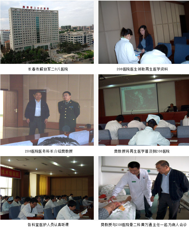 该院烧伤整形科马宁主任自2008年开始应用再生医疗技术及配套产品美宝湿润烧伤膏,08年11月份开始使用创面“速愈贴”治疗糖尿病足和褥疮,对再生医疗复原技术和产品都比较认可。为了进一步扩大临床推广,2009年4月10日樊兆宗教授应208医院医务科长郭杰丞邀请到该院进行“难愈性创面皮肤再生医疗复原技术培训”。10日下午1点半培训会由医务科主持,樊教授为208医院烧伤整形科、普外科、骨科、高干科、中医科、神经内科、门诊部等多学科人员进行了皮肤再生复原讲座,再生复原技术得到了医护人员的认可,为下一步推广工作奠定了基础。