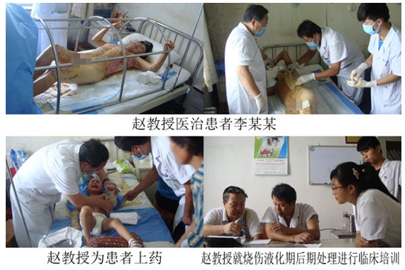 北京烧伤创疡研究所赵瑞庆教授第一时间赶到了该医院,在院领导的协调下,积极参与了抢救工作。截止到8月20日,使用再生复原技术治疗两例大面积烧伤病人,安全度过了休克期、感染期,平稳过渡到创面修复阶段。赵瑞庆教授利用星期天早会间隙时间,就如何正确认识创面液化物,用创疡贴保护创面软薄膜、如何减少使用抗生素用量进行了专题培训。赵教授在菏泽创伤医院抢救病人期间和该院郑连荣、杨凤民院长就北京烧伤创疡研究所与菏泽创伤医院持久长期技术合作达成了一致意见。