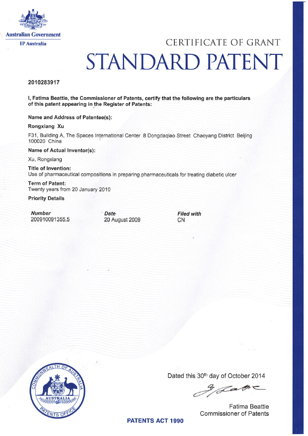 | No.200910091355.5 | 药物组合物在制备治疗糖尿病溃疡药物中的用途 | 查看 |