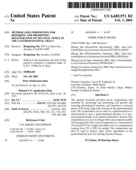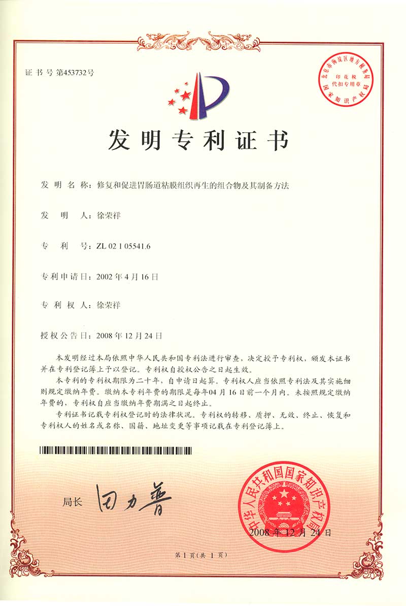 | 02773952.3 | 修复和促进胃肠道粘膜组织再生的方法和物质组合 | 查看 |