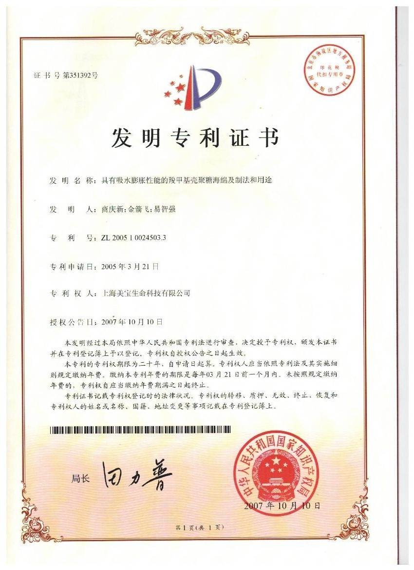 | ZL200510024503.3 | 具有吸水膨胀性能的羧甲基聚糖海绵及制法和用途 | 查看 |